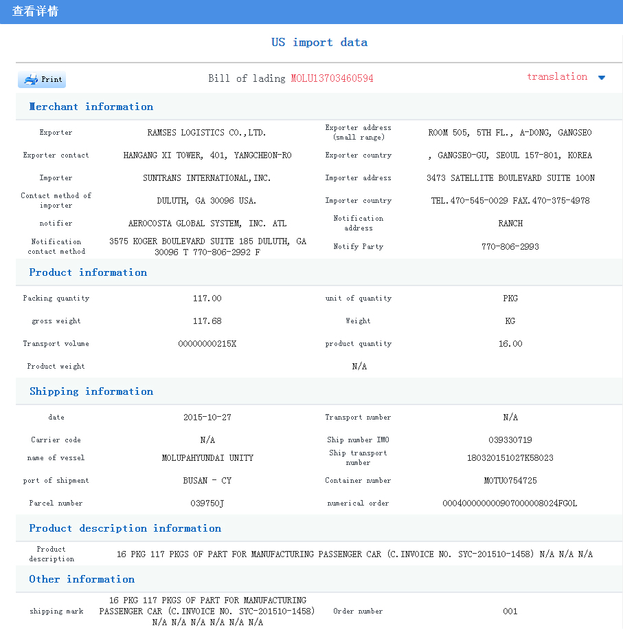 U.S. customs data from automated manifest system (AMS) data, there are the bill of lading and manifest content, but does not contain the content of the single.